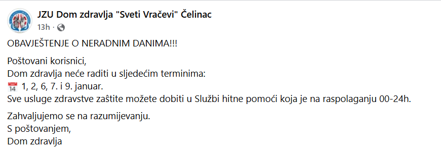 ČESTITKA NOVE GODINE DZ ČELINAC